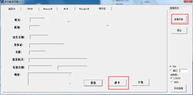 (中控模块,测试工具为:身份证阅读器或良田软件)