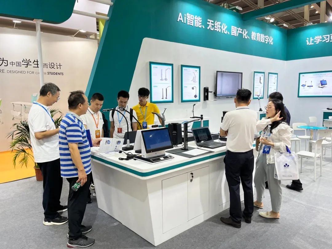 新良田展示了书籍高拍仪、壁挂式高拍仪、多维度展示高拍仪、智能监控高拍仪、智能交互终端等产品,并展示了“壁挂式高拍仪+大屏”的多媒体教学场景、书籍扫描应用场景等,力求以具有针对性、彰显高效、智能的教学解决方案,全方位提高老师的教学效率,让学生学习更轻松,以人工智能技术助力美育教育,全场景助推深圳教育高质量发展。