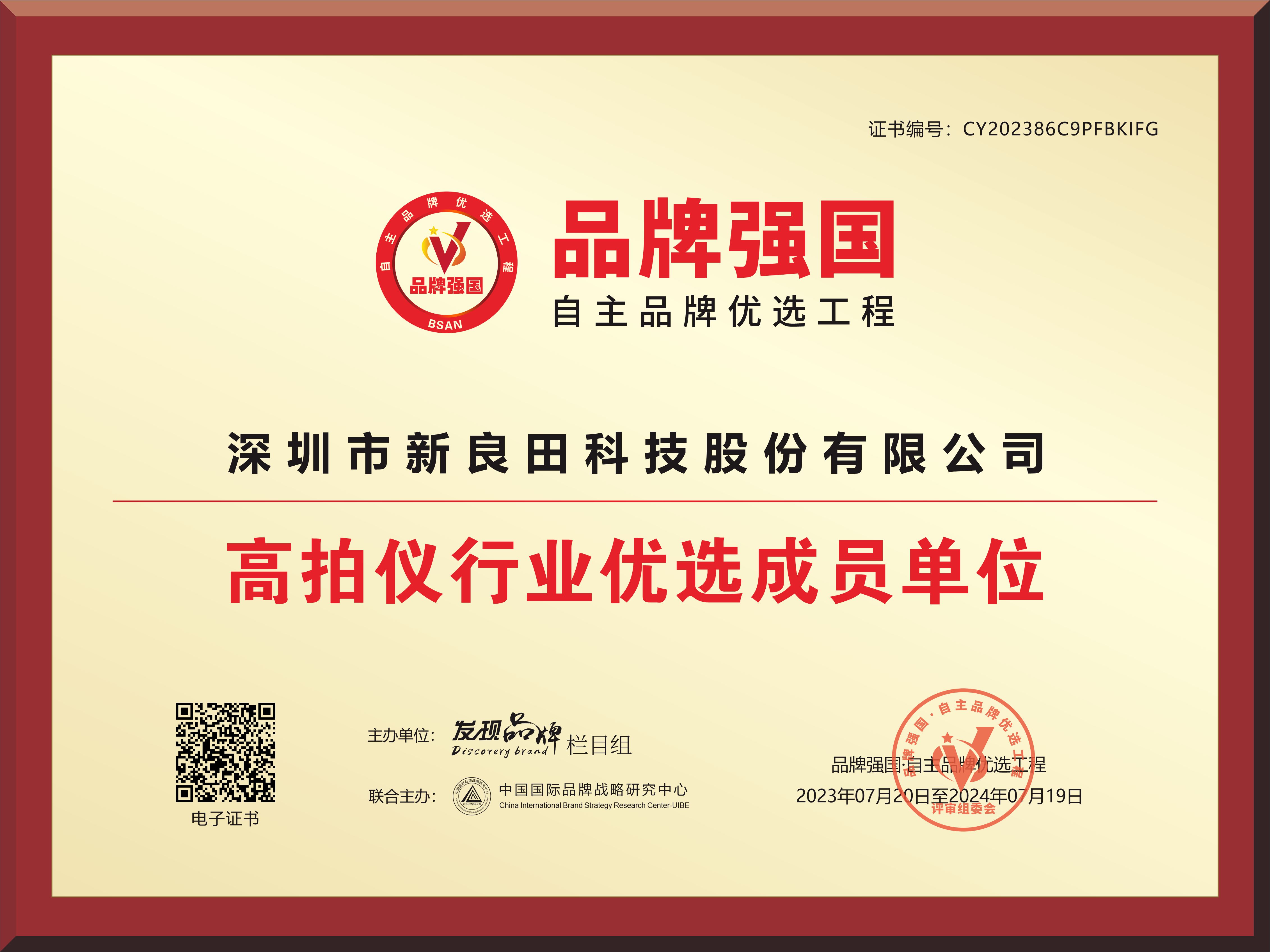 2023年7月,深圳市新良田科技股份有限公司经过资质审核、舆情监控等层层筛选,成功入选为品牌强国自主品牌优选工程“高拍仪行业优选成员单位”,企业信息及品牌“良田”录入品牌强国自主品牌优选工程数据库,向公众展示品牌形象。