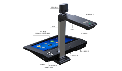 良田GW500A高拍仪由高拍仪、智能终端组合设计,可拆分、组合,线缆整合,桌面清爽;桌面占地面积仅0.06平米,收容便捷;文稿,人像摄像头拆分设计,使用更方便,主镜头500万物理像素、辅镜头200万像素,不仅可扫描录入文件、证卡、实物,还可利用辅镜头拍摄人物,在必要场合记录办事人员的身份、影像信息。配置电磁显示屏和无源电磁压感笔,支持手写签字,真实还原手写签名的笔迹并转为数字化记录。